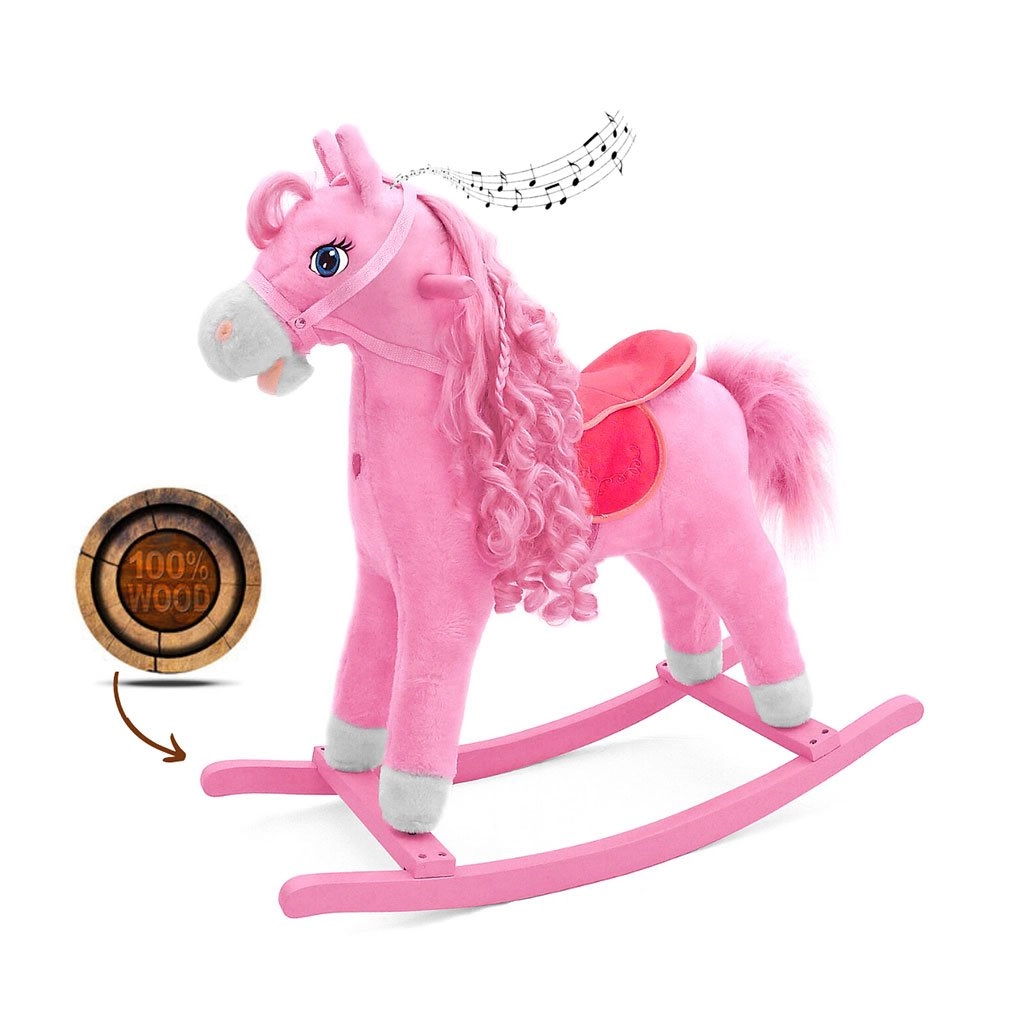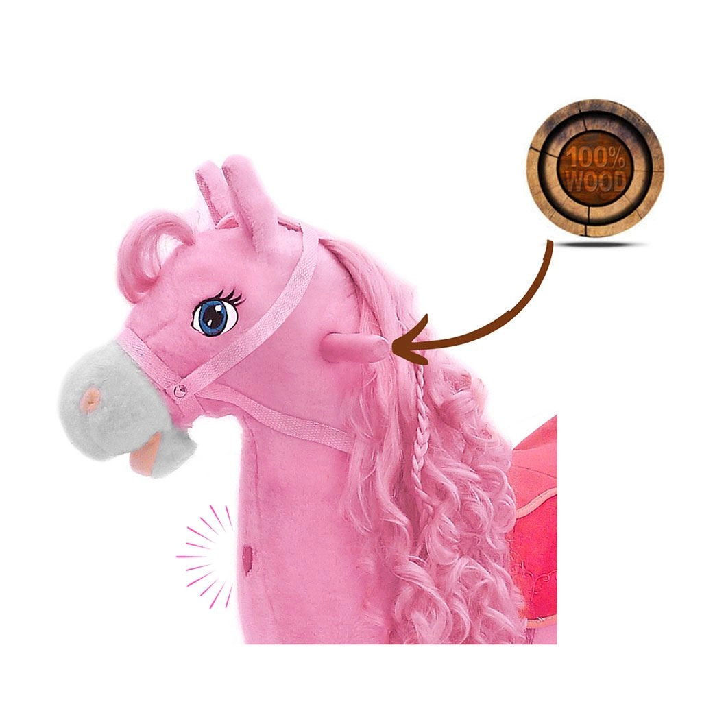 Het hobbelpaard Milly Mally Princess is een ideale keuze voor kinderen vanaf 18 maanden die van bewegen en geluidseffecten houden. Kwalitatieve zachte pluche, een stabiele constructie en houten elementen zorgen voor comfortabel en veilig speelplezier. Door op de oortjes te drukken komt het paard tot leven – het zwaait met de staart, beweegt de mond en laat vrolijk gehinnik horen, wat de fantasie en motoriek van het kind stimuleert.