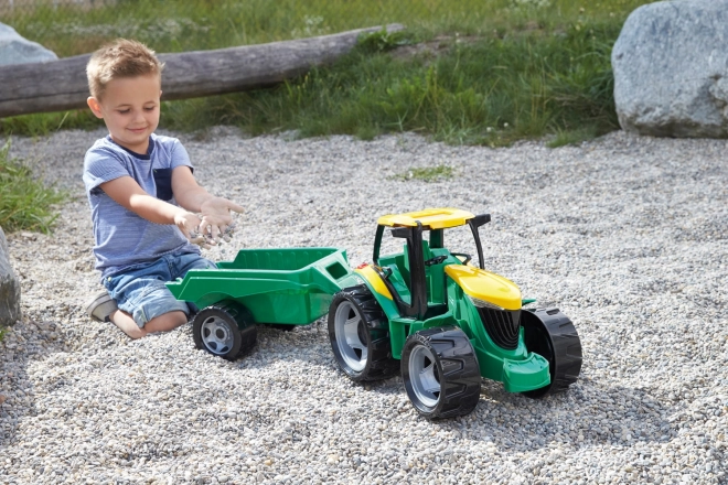 De tractor is gemaakt van hoogwaardige kunststof die bestand is tegen dagelijks gebruik en weersinvloeden. Met de aanhanger kunnen kleine voorwerpen vervoerd worden, wat de verbeelding en motoriek van kinderen ontwikkelt. Dankzij het hoge draagvermogen is het speelgoed stabiel en veilig.