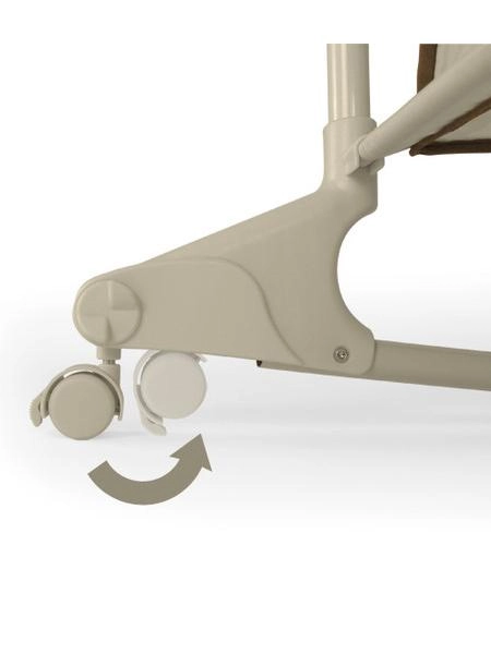 Robuuste dubbele zwenkwielen zorgen voor een soepele verplaatsing door het huis. De ingebouwde vergrendeling garandeert stabiliteit tijdens de slaap van je baby.