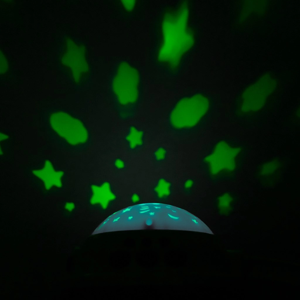 De projector projecteert kleurrijke sterretjes en kan dienen als nachtlampje. Hij creëert een prettige sfeer die je baby kalmeert en voorbereidt op het slapen.