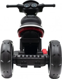 De motor verrast met LED-verlichting (knipperend voor en achter), geluidseffecten en de mogelijkheid om favoriete muziek af te spelen via USB/MP3. Brede, hoogwaardige kunststof banden, een comfortabele zitting en een robuuste constructie zorgen voor comfort, zowel binnen als buiten. Op één acculading kun je 1–2 uur rijden; het gebruik van een beschermende helm wordt aanbevolen.