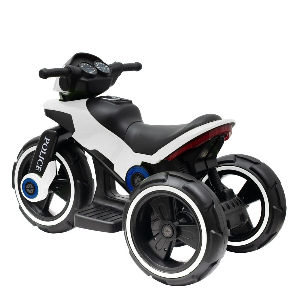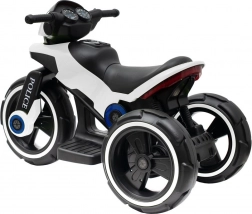 De elektrische kindermotor BABY MIX Police combineert een realistische look met comfort en veiligheid. Dankzij twee krachtige motoren en aandrijving op beide achterwielen genieten kinderen van een stabiele rit met een snelheid van 2–4 km/u. De bediening is intuïtief – een pedaal op de treeplank voor wegrijden en automatisch stoppen bij loslaten; de rijrichting schakel je met een knop.