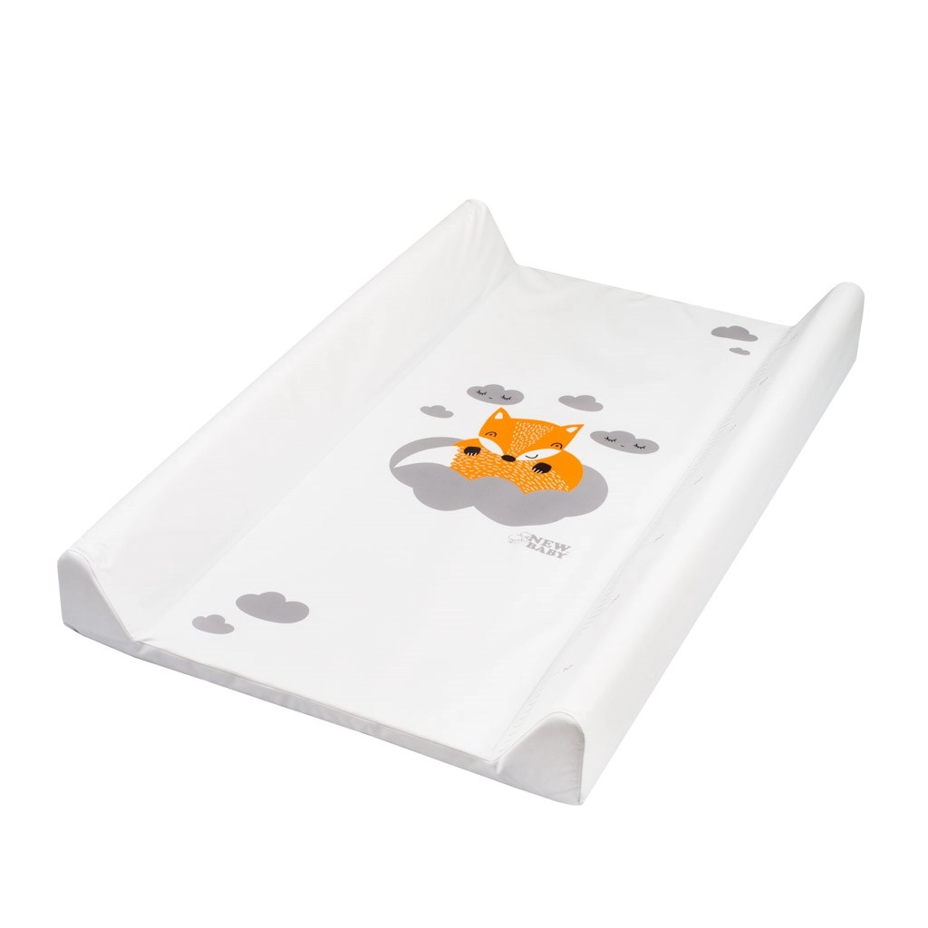 Comfortabele en functionele verschoonmat van New Baby met een schattig vos- en wolkenmotief, ideaal voor de dagelijkse verzorging. De verhoogde zijkanten zorgen voor meer zekerheid tijdens het verschonen, terwijl de zachte vulling zonder harde onderlaag mild is voor de gevoelige babyhuid.