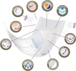 New Love Premium Comfort luiers zijn ontworpen voor comfort en bescherming van de babyhuid. Ademend materiaal ondersteunt luchtcirculatie, terwijl de innovatieve kern met microparels vocht direct insluit en het billetje droog houdt. Dankzij de brede, zachte voorband en de 3D-klittenbandsluiting past de luier zich perfect aan de buikvorm aan.