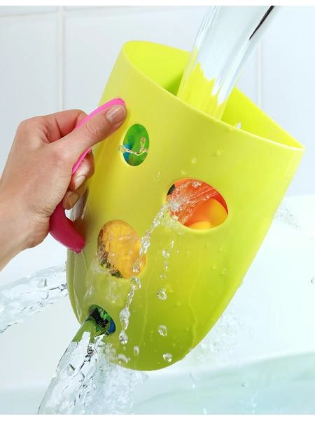 Geperforeerde wanden en bodem zorgen voor waterafvoer en luchtcirculatie, zodat het speelgoed na het bad snel droogt.