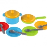 De set van kleurrijk kunststof servies biedt de perfecte gelegenheid voor kinderspel en stimuleert hun creativiteit in de keuken. Deze set is perfect voor het ondersteunen van verbeelding en het ontwikkelen van vaardigheden via rollenspel.