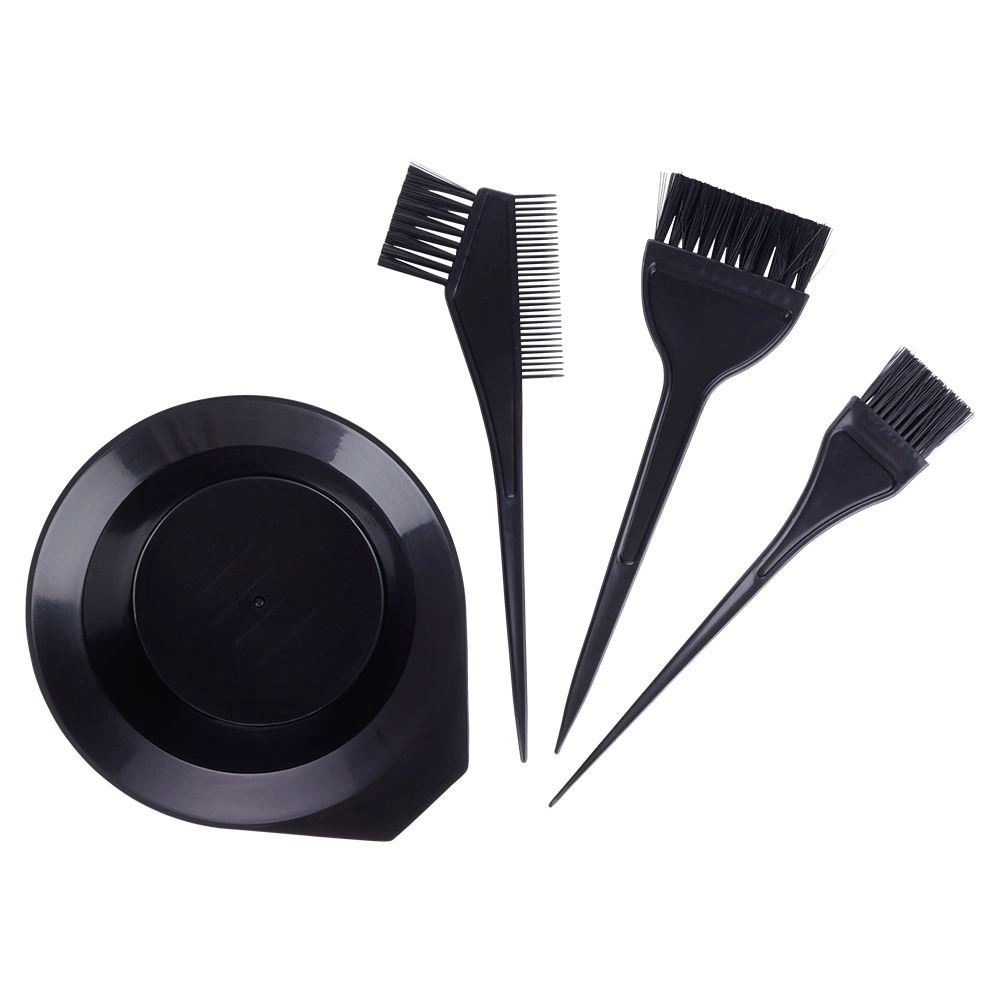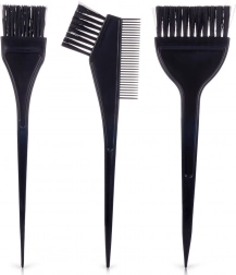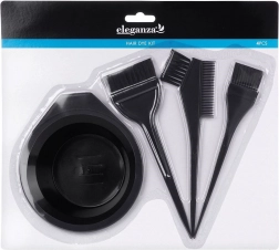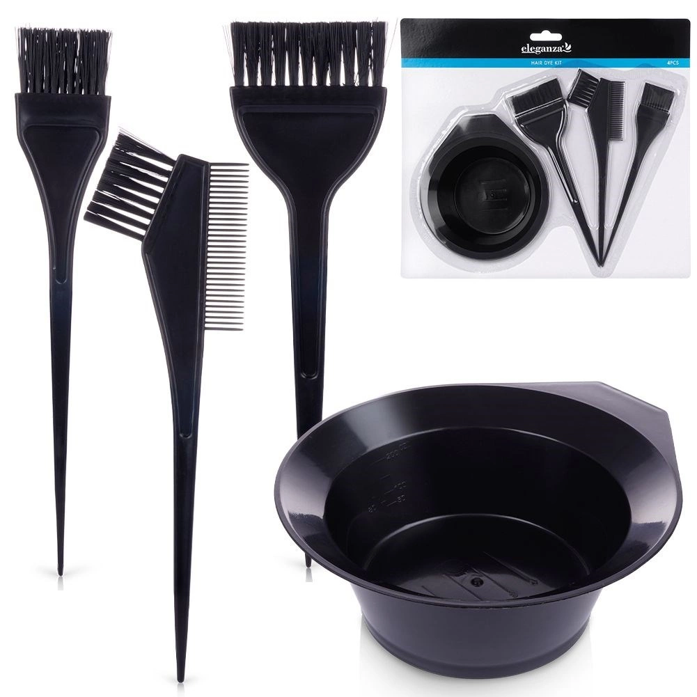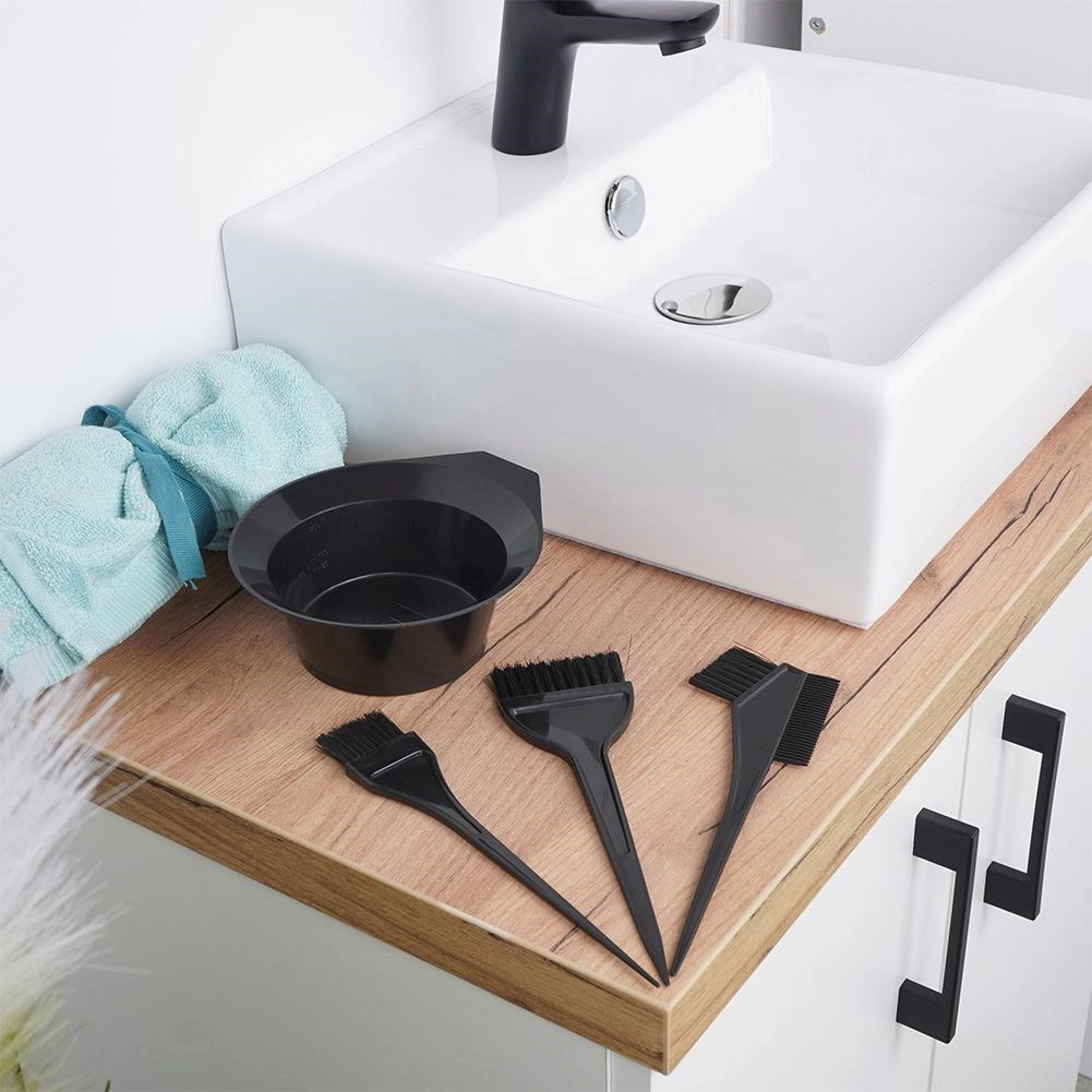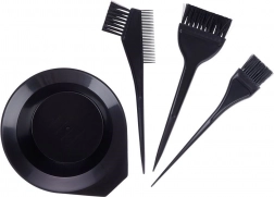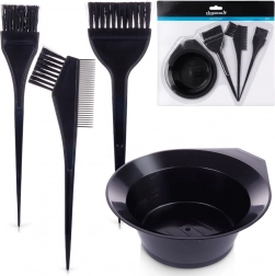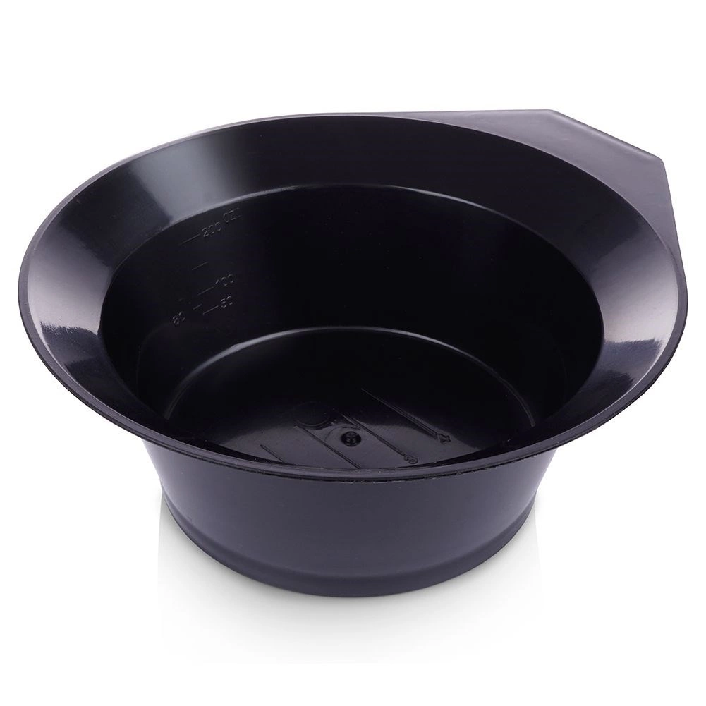 Deze praktische set voor het kleuren van haar biedt alles wat u nodig hebt voor nauwkeurig mengen en gelijkmatige applicatie. De kom met duidelijke maataanduiding (50–200 ml) maakt precies doseren eenvoudig, terwijl drie kwasten in verschillende breedtes zorgen voor precieze toepassing, ook op lastig bereikbare plekken. De duurzame zwarte kunststof is goed bestand tegen kapperschemicaliën en is gemakkelijk te reinigen.