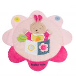 Het zachte speelkleed met babygym Baby Mix in de vorm van een bloem met konijntjesmotief biedt je baby een veilige en knusse plek om te ontdekken. Het ondersteunt de ontwikkeling van de zintuigen, fijne motoriek en oog-handcoördinatie dankzij knisperdelen, een belletje, een piepertje en een spiegeltje. De zachte suède-achtige bovenkant zorgt voor comfort bij spelen op de buik en rug, en de afneembare speeltjes kunnen ook los gebruikt worden.