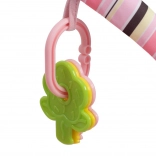Het spiegeltje, de knisperdelen, het piepertje en het belletje stimuleren gehoor, zicht en tast en bevorderen de fijne motoriek.