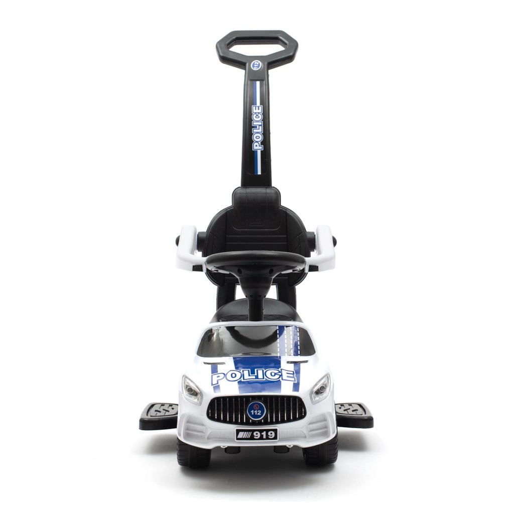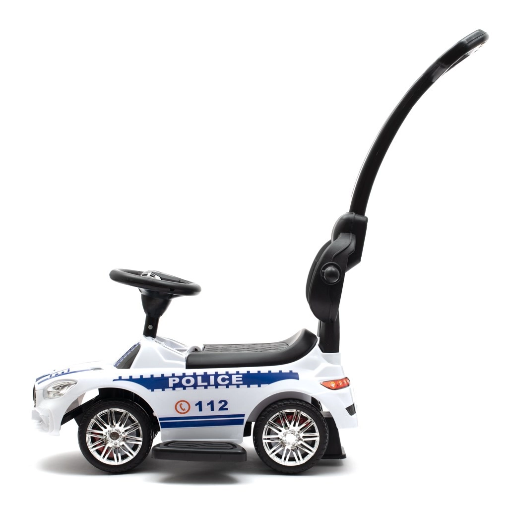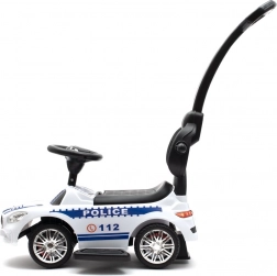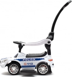 De BABY MIX politieloopauto in het wit combineert een fraai design met functionaliteit. Draaibare voorwielen zorgen voor soepel manoeuvreren, de gevormde zitting en rugleuning voor comfortabel rijden en het geluidspanel geeft het spel een realistische dimensie. Dankzij de hoge duwstang en zijsteunen houden ouders de eerste ritten van het kind goed onder controle.