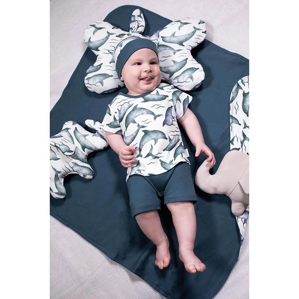 Deze baby-katoenen sjaalmuts NICOL Dolphin combineert comfort, functionaliteit en een schattig design. Het natuurlijke materiaal is zacht voor de gevoelige babyhuid, ademt goed en is ideaal voor dagelijks dragen, zowel thuis als buiten.