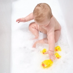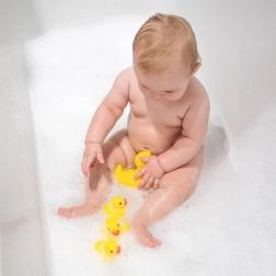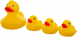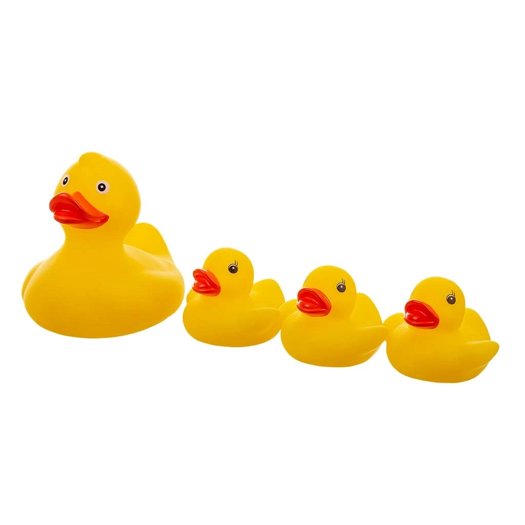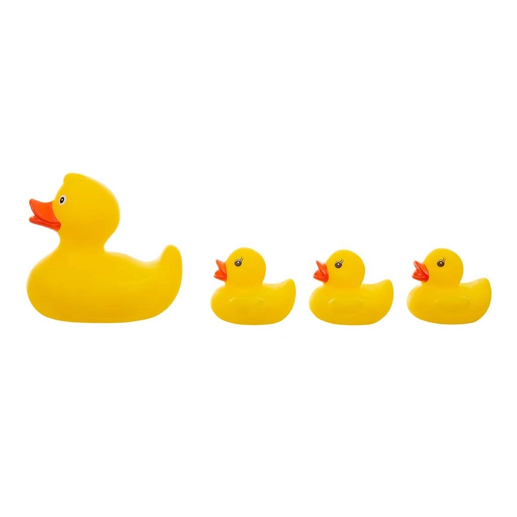 Met deze schattige eendenfamilie wordt elk badmoment een feestje. De set bevat 1 grote eend en 3 kleine eendjes die drijven en dankzij de opening water kunnen spuiten. De helder gele kleur stimuleert het visuele waarnemen en de kindvriendelijke vorm bevordert de fijne motoriek.