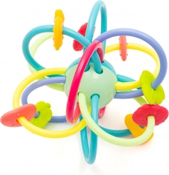 Deze multifunctionele bijtring met een zachte rammelaar biedt verlichting bij doorkomende tandjes en vermaakt tegelijkertijd de zintuigen. Zachte elementen masseren het tandvlees, terwijl de rammelaar het gehoor stimuleert en helpt bij de ontwikkeling van de oog-handcoördinatie. Dankzij de lichte constructie en het doordachte ontwerp kan het kind het vanuit elke hoek gemakkelijk vastpakken.