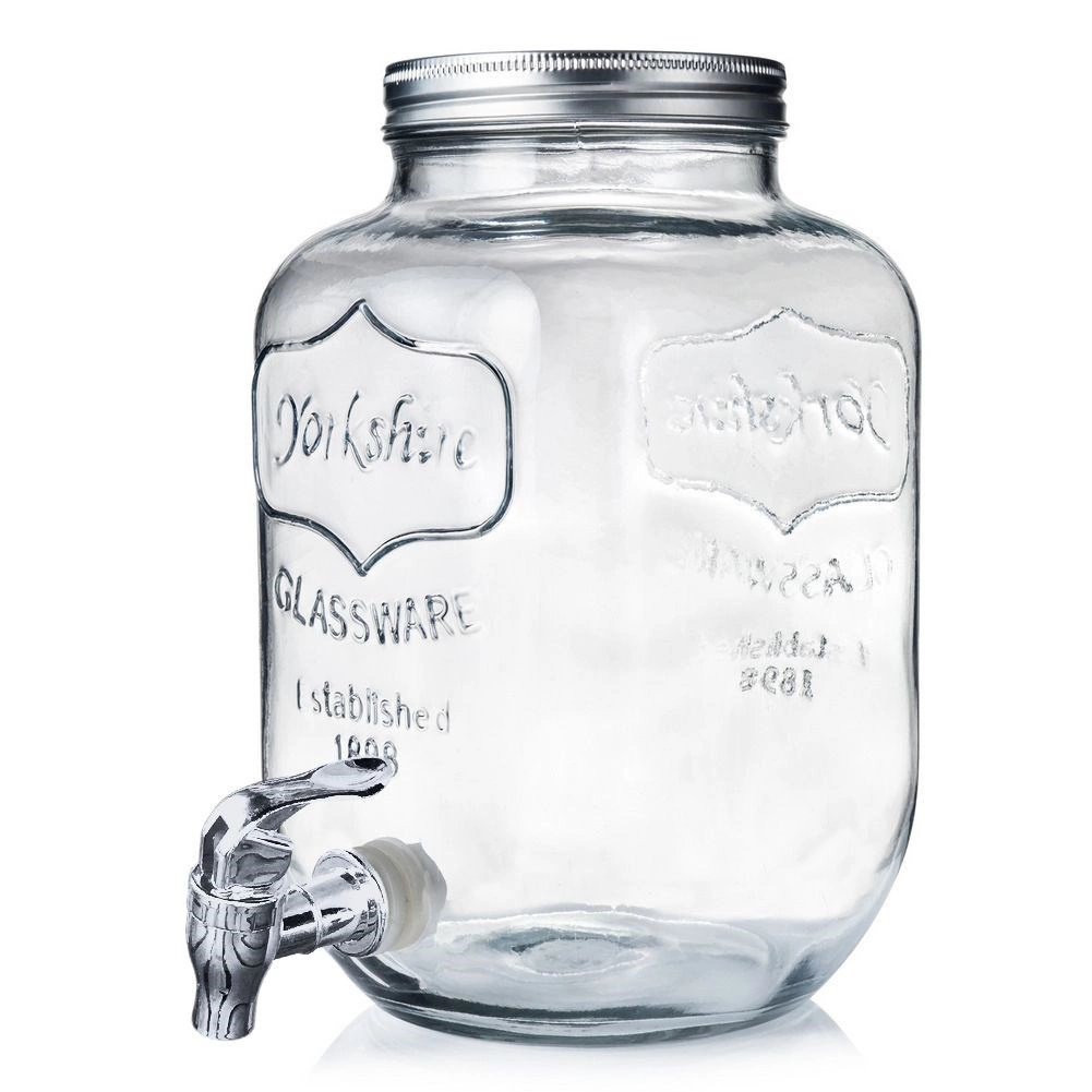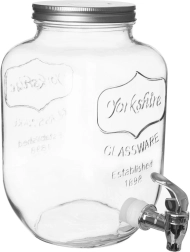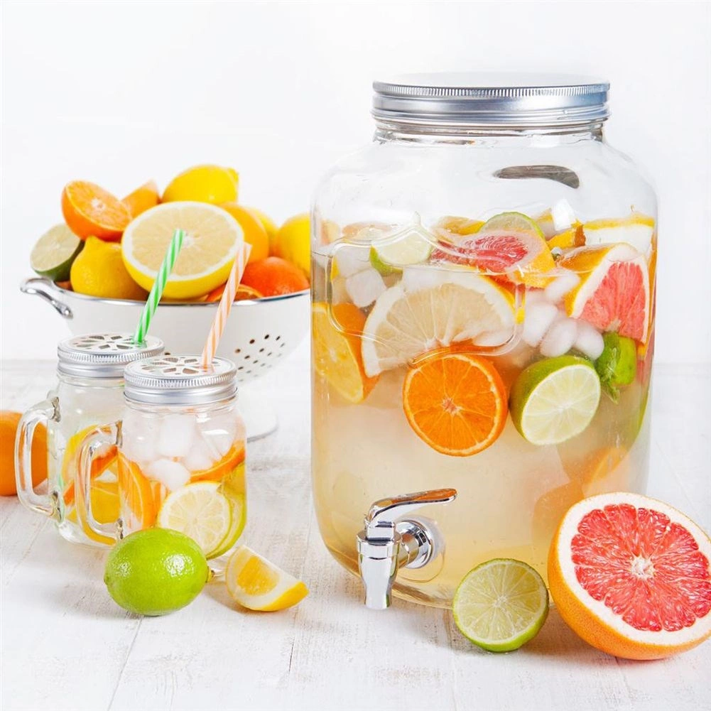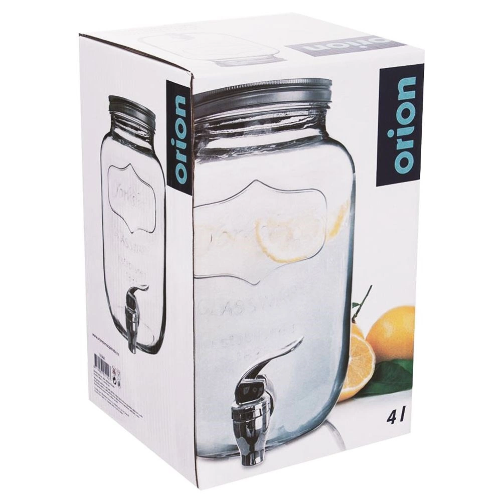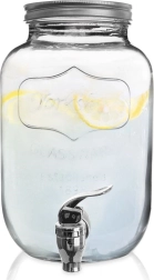 Stijlvolle glazen drankdispenser van 4 l met metalen deksel en praktisch kraantje voor comfortabel tappen. Ideaal voor limonade, fruitwater, punch of iced tea. Heeft een brede opening voor eenvoudig vullen en reinigen, veilige materialen geschikt voor contact met voedsel en een afsluitbaar deksel dat de drank tegen insecten beschermt.