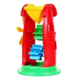 Stimuleer de creativiteit van uw kinderen met deze levendig gekleurde molen voor zand en water. Deze functionele molen maakt het mogelijk om zand te strooien of water in het bovenste gedeelte te gieten en te observeren hoe de wielen draaien, wat een grote bron van plezier voor kinderen is.