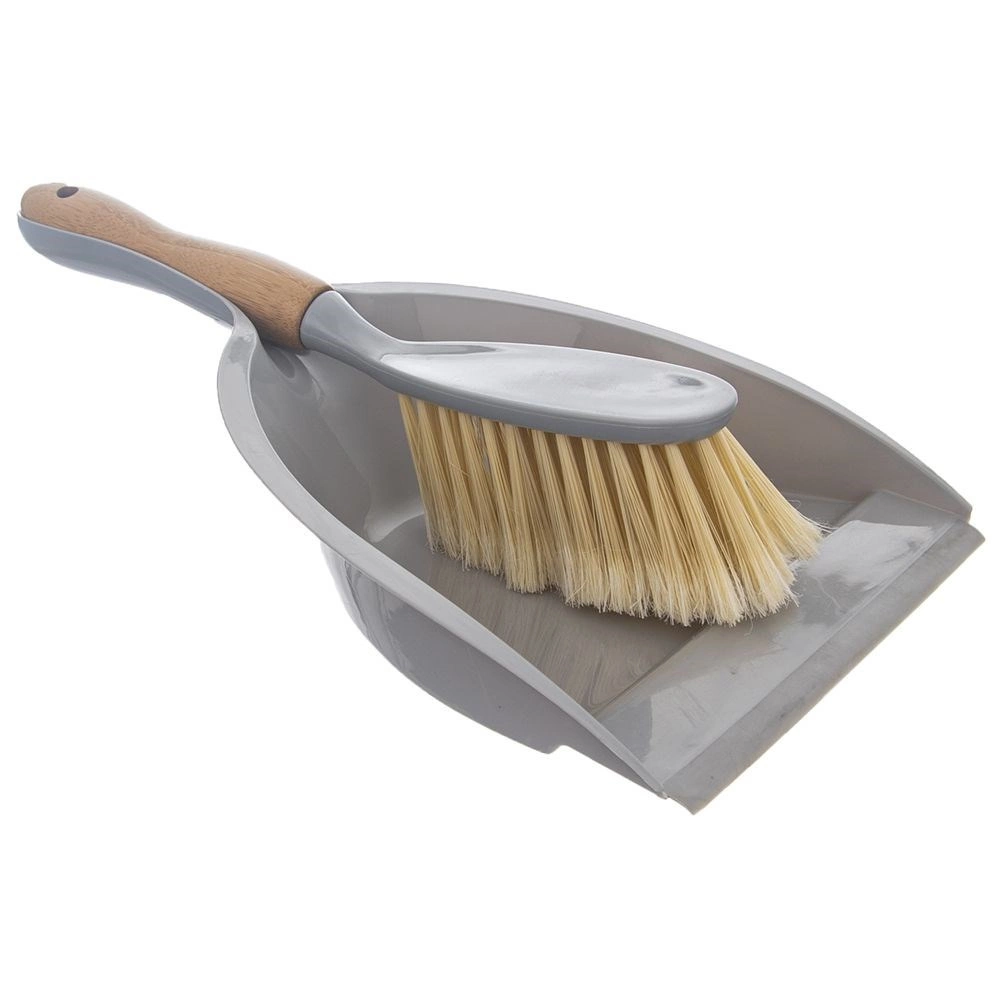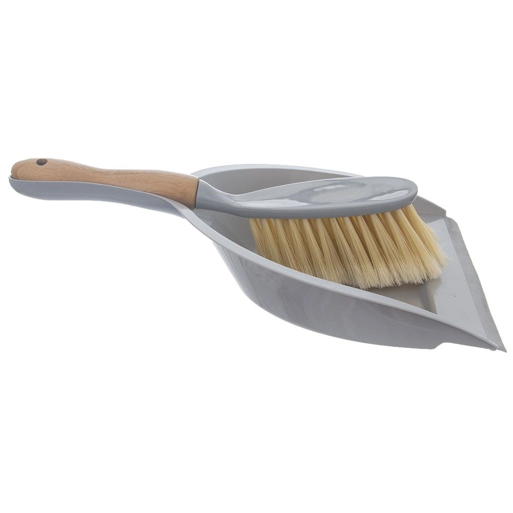 Elegante en duurzame set voor dagelijkse schoonmaak. Het stofblik van hoogwaardig grijs kunststof heeft een brede, diepe opvang en een rubberen rand van 1 cm die uitstekend op de vloer aansluit en het ontsnappen van vuil voorkomt. De handveger met bamboe handgreep ligt prettig in de hand en de dichte, zachte haren nemen ook fijn stof efficiënt op.