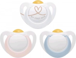 De NUK Star fopspeen is ontworpen om de natuurlijke zuigbehoefte van de baby te respecteren en tegelijkertijd een gezonde mondontwikkeling te ondersteunen. De zachte bovenzone past zich voorzichtig aan het gehemelte aan, terwijl de onderste vorm ruimte laat voor natuurlijke tongbewegingen. Dankzij de praktische ring van hoogwaardig polypropyleen kan hij zelfs door de allerkleinste handjes gemakkelijk vastgehouden worden.