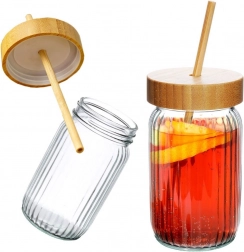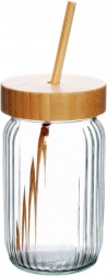 Deze elegante glazen “mason” tumbler combineert functionaliteit met een natuurlijke look. Het geribbelde heldere glas ligt prettig in de hand, het bamboe schroefdeksel sluit je drankje betrouwbaar af en het herbruikbare bamboe rietje zorgt voor comfortabel sippen. Perfect voor water met fruit, huisgemaakte limonades, smoothies en ijskoffie – thuis, op het terras of in de tuin.