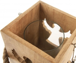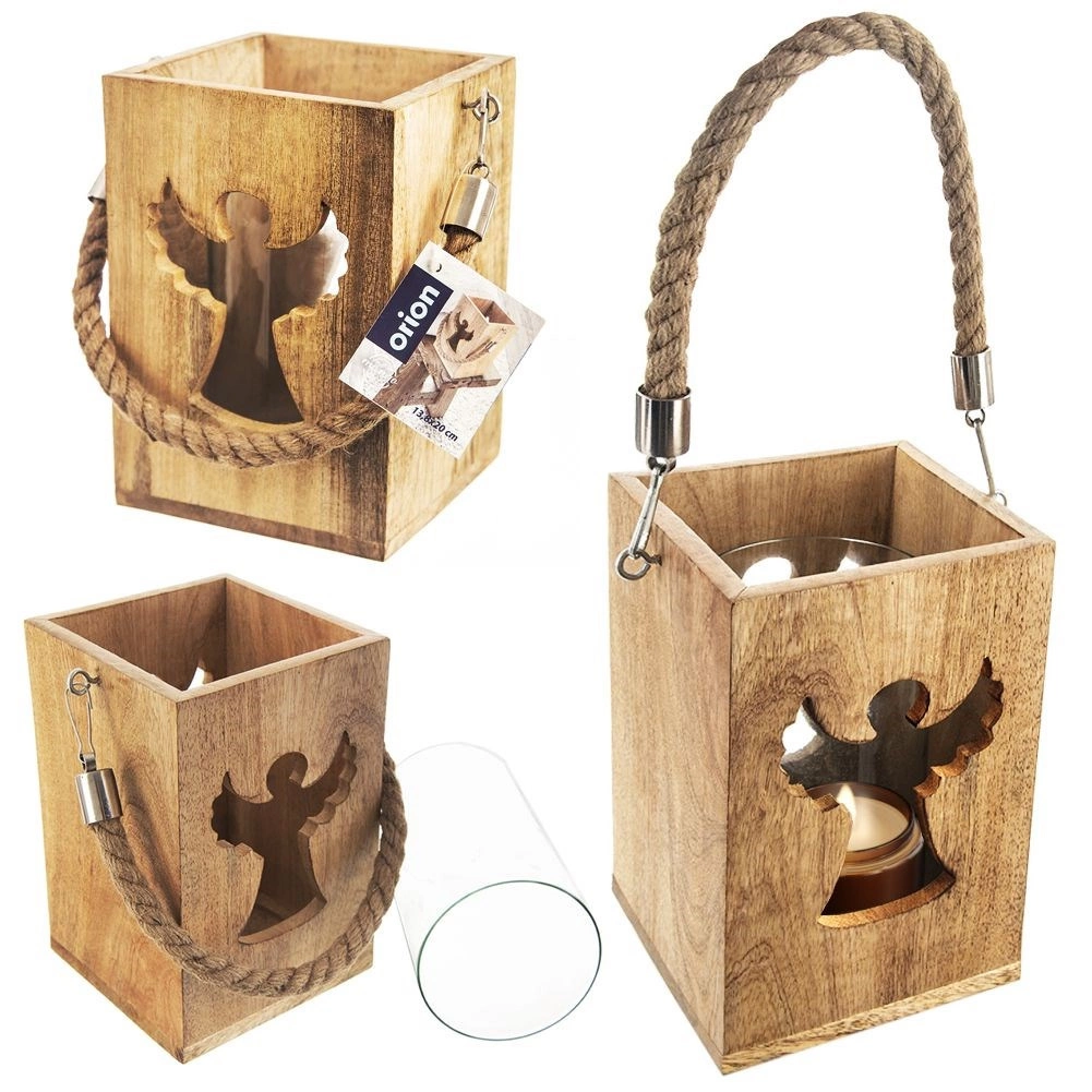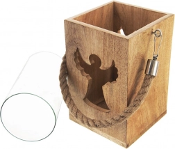 Breng een warme sfeer in je interieur en exterieur. De houten lantaarn met engel-uitsnede is geschikt voor klassieke kaarsen en waxinelichtjes. Inclusief een grote glazen cilinder die de vlam beschermt en de veiligheid verhoogt.