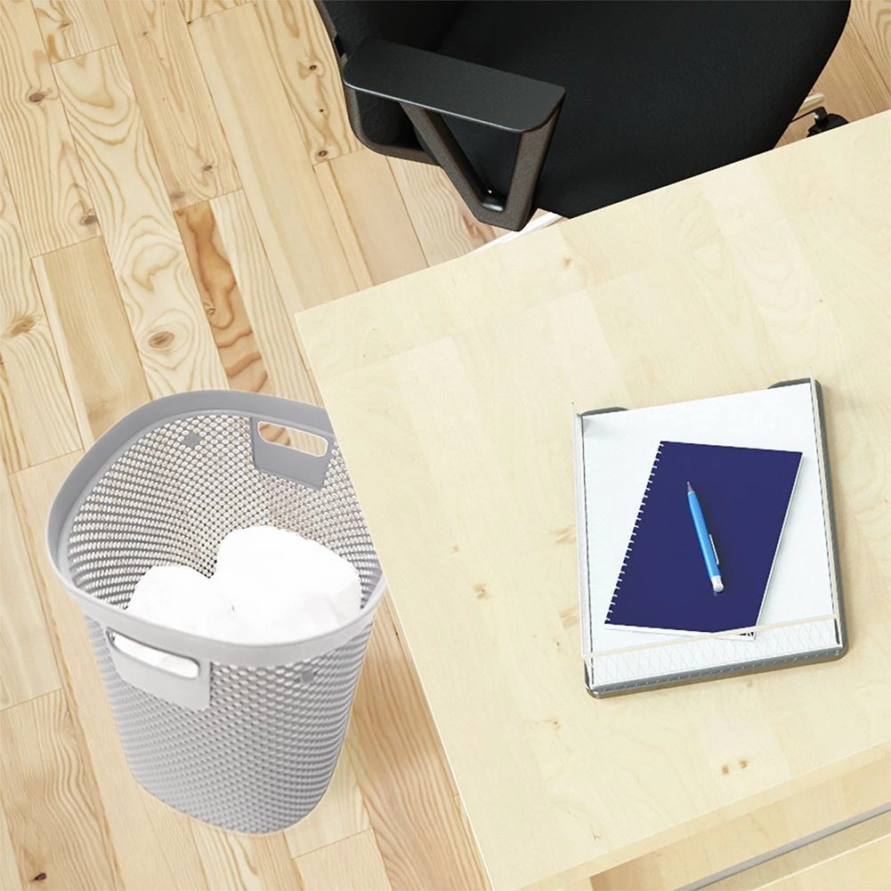 Dankzij de ventilatieopeningen blijft de inhoud vrij van onaangename geurtjes en de praktische handgrepen vergemakkelijken dragen en legen. Door de optimale afmetingen past hij gemakkelijk onder een bureau of in een kast.