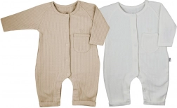 Het effen uiterlijk wordt verfraaid door een moderne gestructureerde stof, die het stuk stijl en subtiele elegantie geeft. De onesie is ideaal voor pasgeborenen en grotere baby’s – bij elke beweging blijft het ruggetje steeds bedekt en warm.