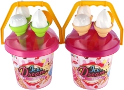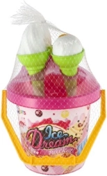 Deze kleurrijke zandset met stijlvol roze deksel en het “Ice Dream Bucket”-motief stimuleert fantasie, fijne motoriek en sociale vaardigheden bij rollenspellen als café, restaurant of winkel. Het deksel heeft speciale openingen om bolletjes te vormen, waardoor “ijs” van zand er net echt uitziet.