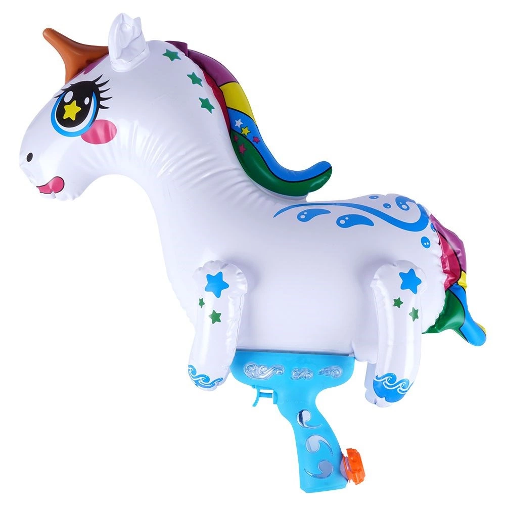 De opblaasbare eenhoorn verandert zomerdagen in eindeloos waterplezier. Pomp eenvoudig op met het meegeleverde pompje, vul het reservoir en met een druk op de trekker spuit het water uit de bek van de eenhoorn. Dankzij het stevige materiaal en doordachte ontwerp is het speelgoed ideaal voor op het strand, bij het zwembad en in de tuin.