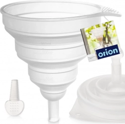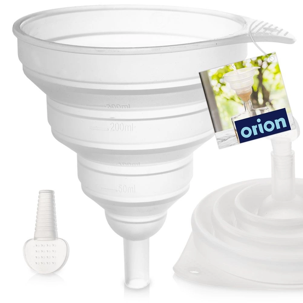 Praktische opvouwbare keukentrechter met een diameter van 12 cm en een hoogte van 17 cm, met stop en geïntegreerde maatverdeling. Gemaakt van duurzaam siliconen, bespaart ruimte in de lade en is geschikt voor het vullen van flessen en potten. Hittebestendig tot 100 °C en vaatwasserbestendig (zonder stop). Ideaal voor het overgieten van sappen, likeuren, wijn of bier en voor het nauwkeurig afmeten van 50–300 ml. Duurzaam materiaal, opvouwbare constructie, maatschaal, eenvoudig onderhoud.