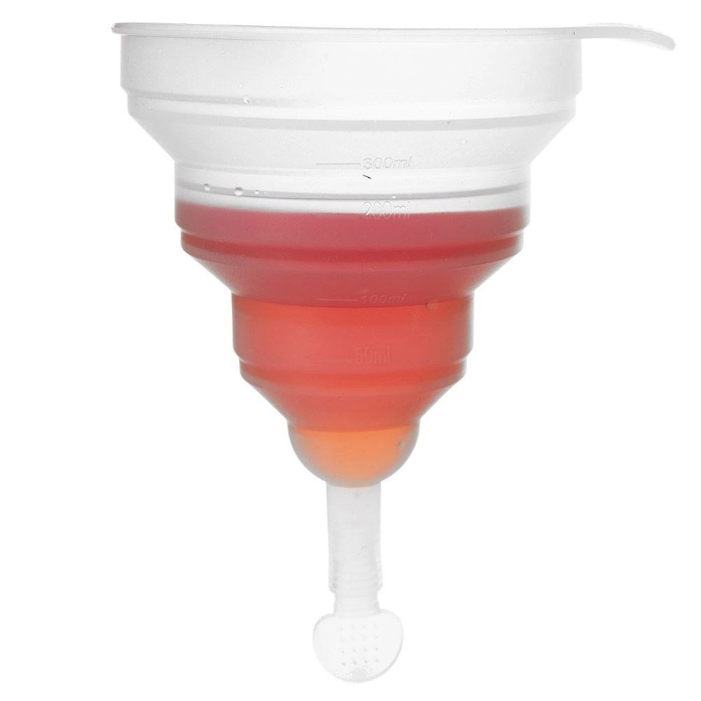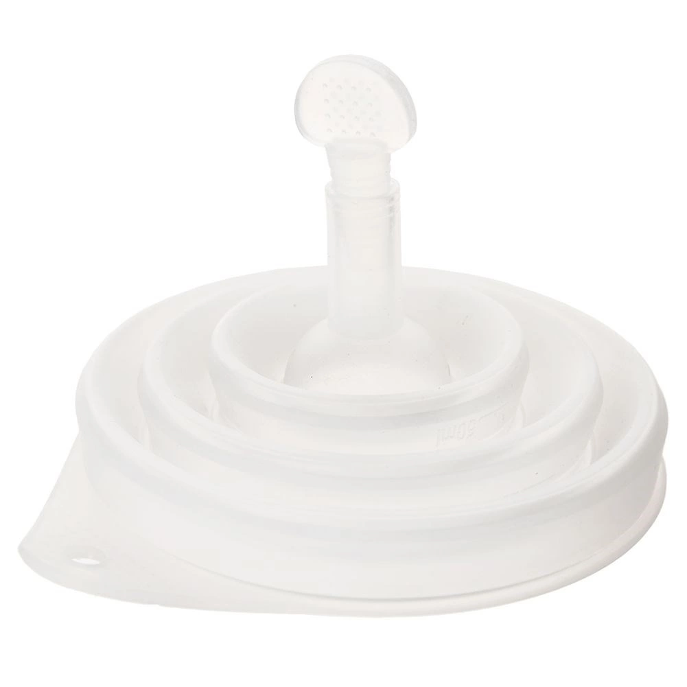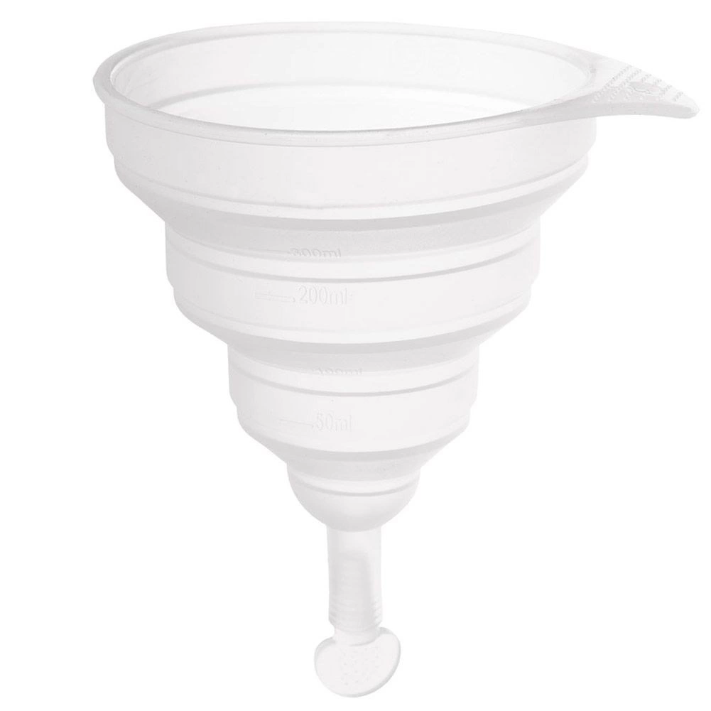 De opvouwbare trechter is een onmisbare hulp in elke keuken. Dankzij de siliconen uitvoering is hij compact op te bergen, stabiel en bij juist gebruik gaat hij vele jaren mee. De geïntegreerde maatschaal 50–300 ml maakt nauwkeurig afmeten van zowel vloeistoffen als droge ingrediënten eenvoudig.
