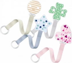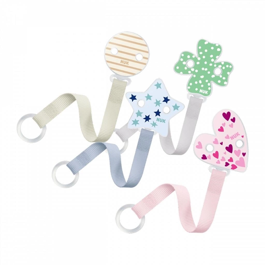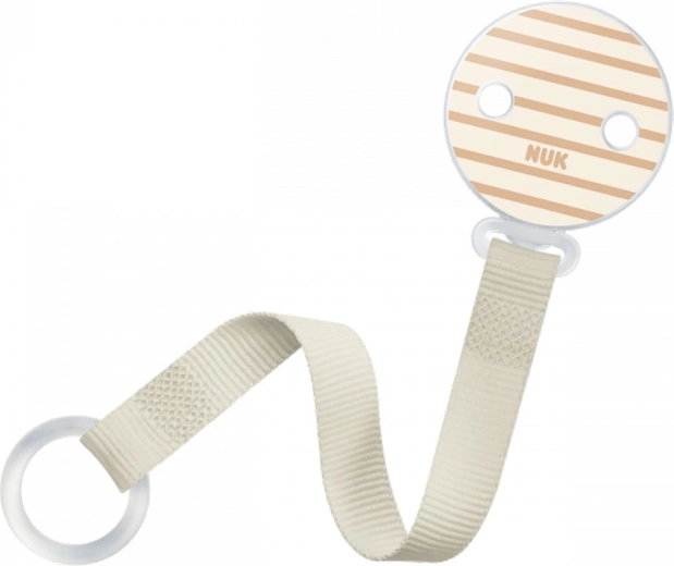 Het praktische NUK fopspeenkoord houdt de fopspeen altijd binnen handbereik en schoon. Dankzij de veilige clip bevestig je het eenvoudig aan kleding en voorkom je dat de fopspeen valt of kwijtraakt. De flexibele siliconen ring past ook op fopspenen zonder ring. Eenhandige bediening en zonder scherpe randen voor maximale veiligheid voor de baby.