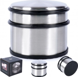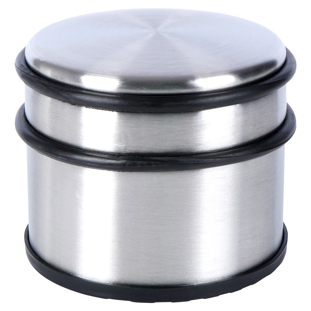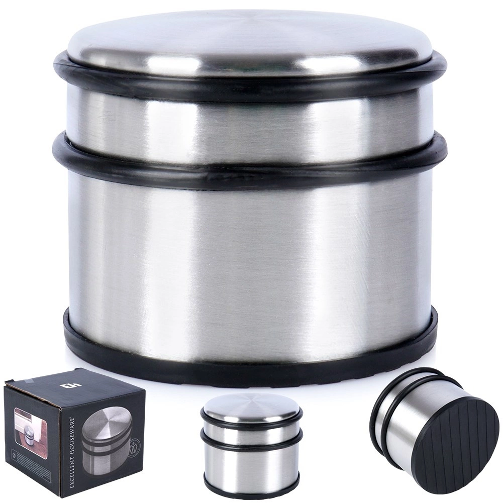 Robuuste deurstop met een modern roestvrijstalen look voorkomt dat deuren vanzelf dichtvallen of tegen muren en meubels slaan. Massieve constructie en een anti-slip rubberen basis garanderen stabiliteit op de meeste vloertypen.