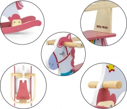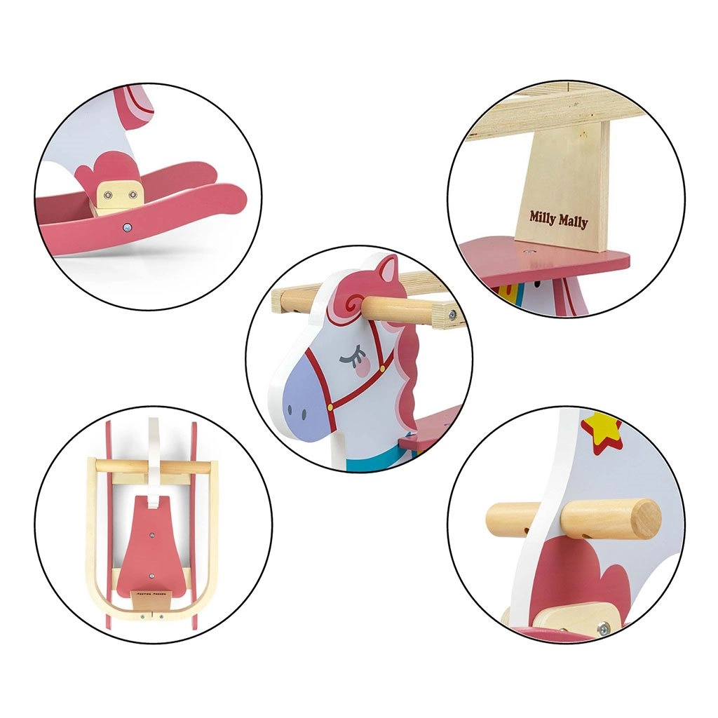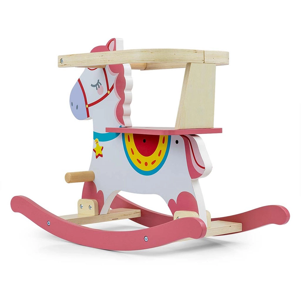 Het paardje is voorzien van stevige handgrepen, voetsteunen en heeft geprofileerde glijders die zorgen voor soepel schommelen zonder ongewenst kantelen. Het moderne pastelontwerp past gemakkelijk in elke kinderkamer en dankzij de geschenkverpakking is het ook een prachtig cadeau.