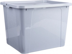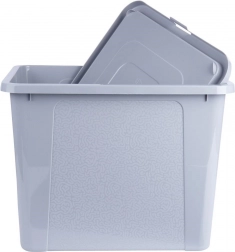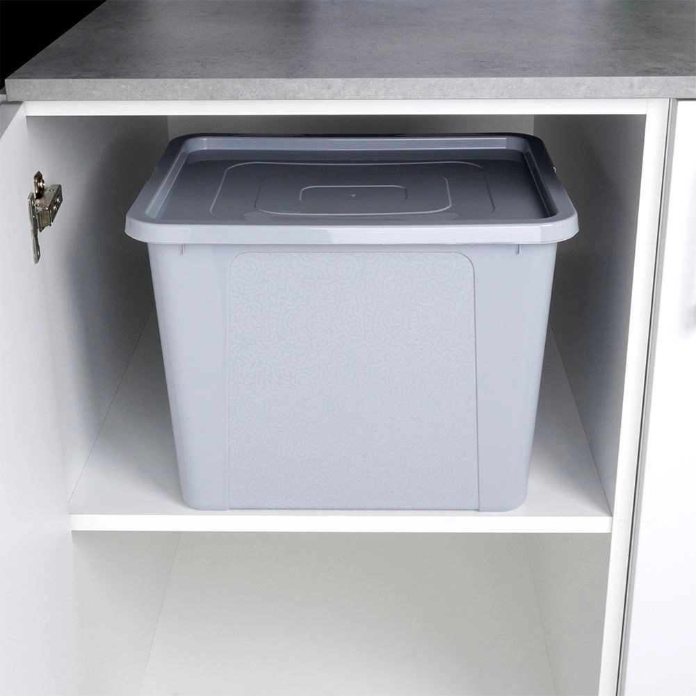 Praktische opbergbox met deksel met een inhoud van 30 l helpt orde te houden in huis, kantoor en werkplaats. Hij is licht maar duurzaam, heeft afgeronde hoeken voor veilig gebruik en een klikdeksel dat de inhoud tegen stof en vocht beschermt. Dankzij het universele ontwerp in lichtgrijs past hij in kasten, planken en rekken.