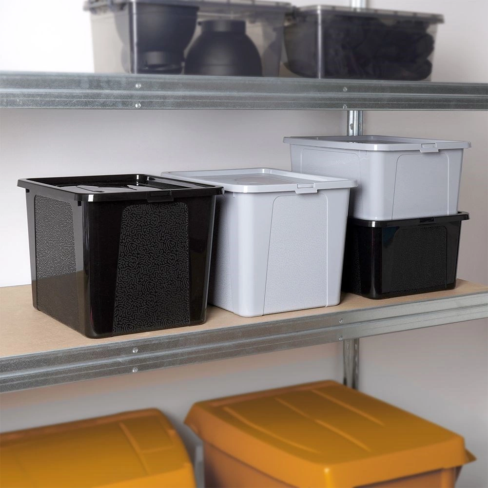 Dankzij de rechthoekige vorm en stapelbaarheid is de box ideaal voor kasten, voorraadkasten, garages en kantoorkasten. De fijne textuur aan de zijkanten geeft een elegante uitstraling en voorkomt wegglijden bij het hanteren.