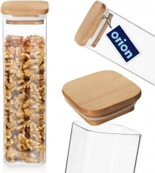 Houd orde en versheid met deze praktische glazen pot met bamboe deksel en siliconen afdichting. Het heldere borosilicaatglas is bestand tegen temperatuurschommelingen en laat je de inhoud in één oogopslag controleren. De minimalistische look en het natuurlijke bamboe maken het een elegante keukenaccessoire.