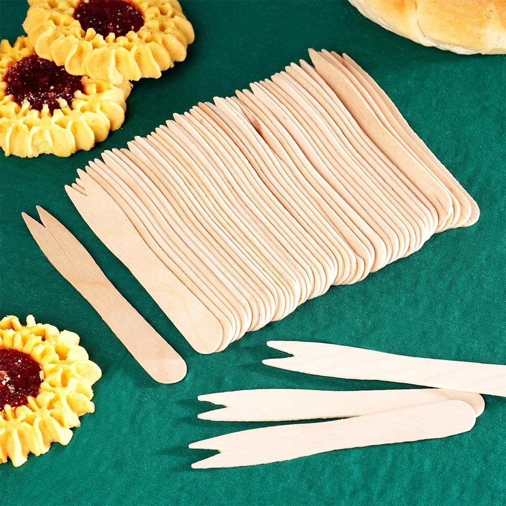 Praktische wegwerp houten vorkjes van 8,5 cm in een verpakking van 50 stuks voor eenvoudig serveren en eten van snacks. Gemaakt van natuurlijk berkenhout, ze zijn sterk, licht en breukbestendig. Ideaal voor friet, fruit, kaas, groenten of mini-sandwiches. Milieuvriendelijk en biologisch afbreekbaar, een uitstekend alternatief voor plastic.
