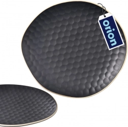Elegant dessertbord van hoogwaardig steengoed in zwart, perfect als aanvulling op een moderne of klassieke tafel. De onregelmatige ronde vorm en de matte, gestructureerde afwerking met pelsmotief geven het bord een origineel karakter en verbeteren tegelijk de grip. Dankzij de compacte afmetingen is het ideaal voor het serveren van kleine desserts, hapjes of voorgerechten.