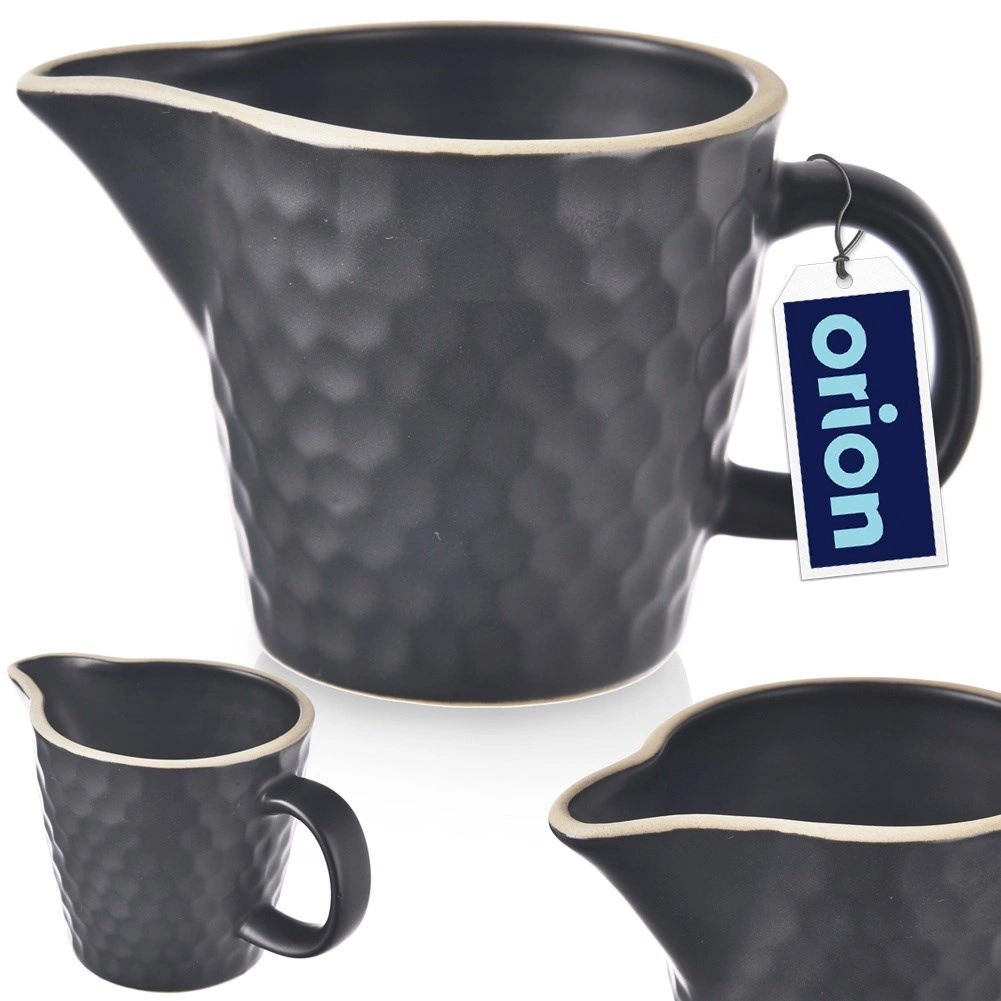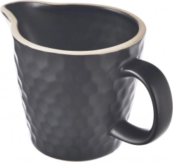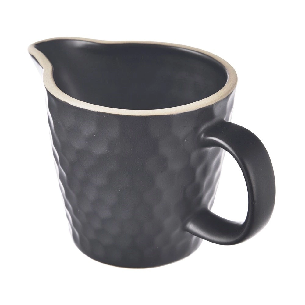 Dit zwarte steengoeden melkkanetje met een inhoud van 100 ml vult je koffieservies thuis of in de horeca perfect aan. Dankzij het matte oppervlak met honingraatachtig reliëf en de subtiele lichte rand oogt het stijlvol en tijdloos.