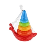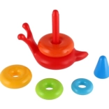 Kleurrijke stapelpiramide is het ideale speelgoed voor het ontwikkelen van de motorische vaardigheden van kinderen. Het bestaat uit verschillende kleurrijke ringen en een lachende basis in de vorm van een slak.