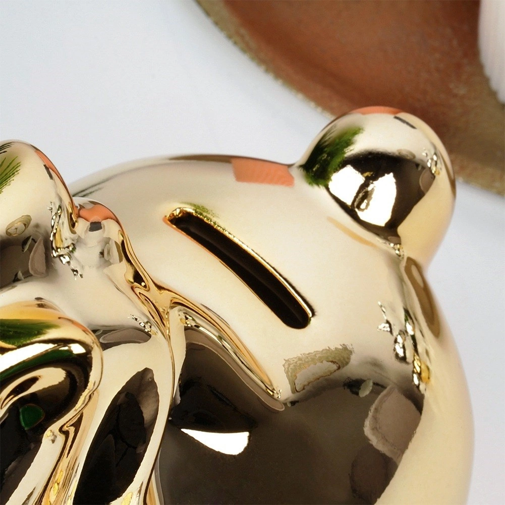 De glanzende gouden glazuur geeft de spaarpot een luxueuze uitstraling en laat zich eenvoudig combineren met moderne interieurs in glamourstijl.