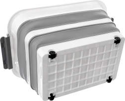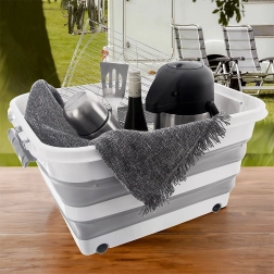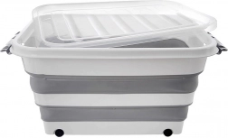 De box is gemaakt van duurzaam TPR-rubber in combinatie met hoogwaardig plastic, waardoor hij dagelijks gebruik in huis, werkplaats en tuin aankan. De opvouwbare constructie maakt het mogelijk de box tot ca. 9,5 cm hoogte in te klappen, zodat u ruimte bespaart wanneer hij niet wordt gebruikt. Ideaal voor het opbergen van beddengoed, speelgoed, kleding, textiel, boeken en andere huishoudelijke benodigdheden.