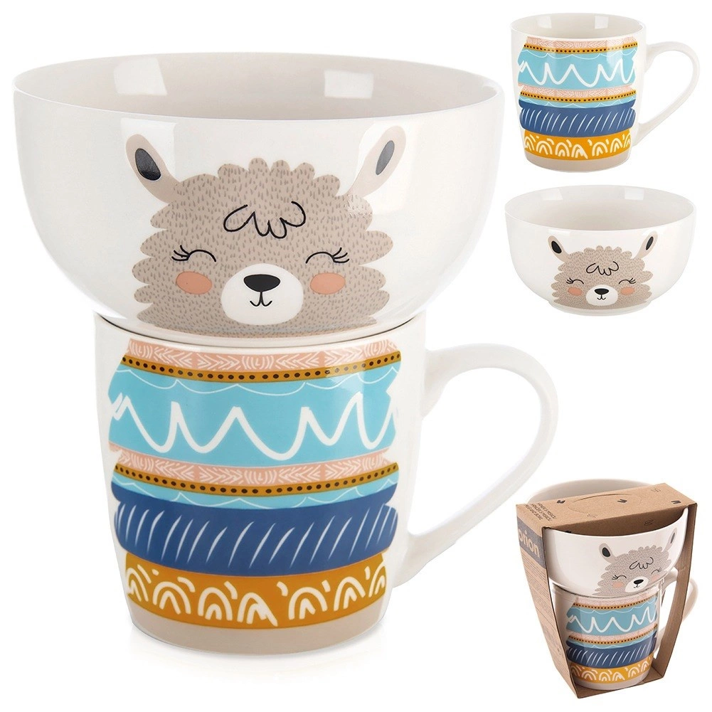 De mok en de kom vormen samen een lama-afbeelding. De speelse print stimuleert plezier aan tafel en maakt elke maaltijd gezelliger.