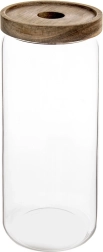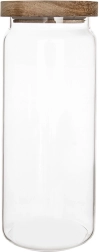 Praktische glazen pot met een inhoud van 1,6 l en een houten deksel met siliconenafdichting houdt je etenswaren langer vers en geurend. Het duurzame borosilicaatglas is ideaal voor dagelijks gebruik, de transparante wanden bieden direct zicht op de inhoud en de elegante look verfraait elke keuken. De pot is geschikt voor koffie, pasta, noten, muesli of andere droge ingrediënten en het glazen gedeelte kan in de vaatwasser.
