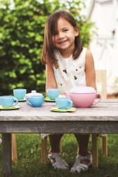 De set is ideaal voor een theefeestje met tot wel vier kinderen. Ondersteunt fantasiespel, communicatie en fijne motoriek. Dankzij de stevige uitvoering geschikt voor spelen thuis, in de tuin of in de zandbak.