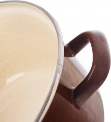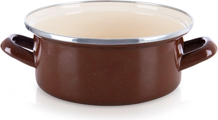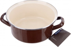 Elegante pan in retrostijl uit de Brown-collectie combineert de duurzaamheid van emaille met een tijdloos design. Buitenzijde en grepen in bruin, binnenzijde met crèmekleurige emaille, de bovenzijde is afgewerkt met roestvrij staal voor extra duurzaamheid. Dankzij de gelijkmatige warmteverdeling ideaal voor soepen, sauzen en stoofgerechten.