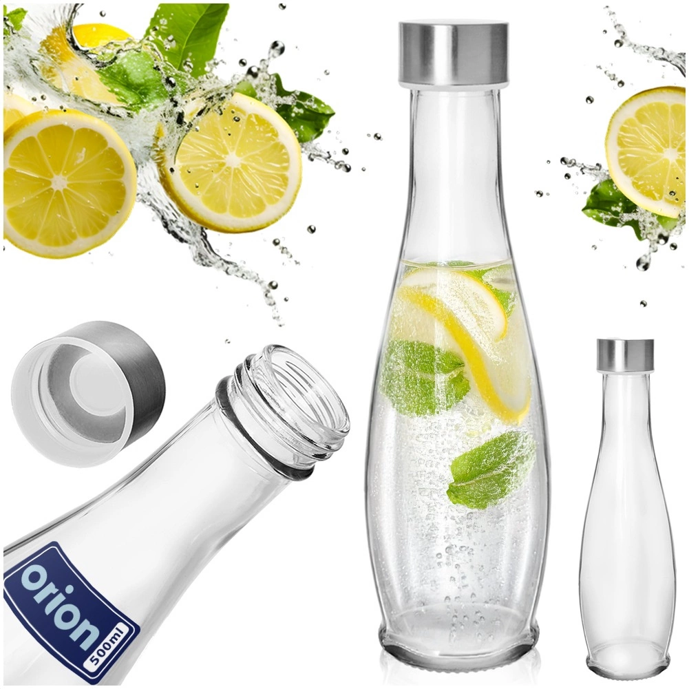 De stijlvolle glazen fles van 480 ml is ideaal voor het dagelijkse drinkritme en voor elegant serveren tijdens familiefeesten. Het heldere glas maakt het eenvoudig om het niveau te controleren en staat fraai bij het serveren van dranken met fruit en kruiden. De metalen dop met siliconen afdichting zorgt voor een betrouwbare sluiting zonder lekken en houdt de drank langer vers.