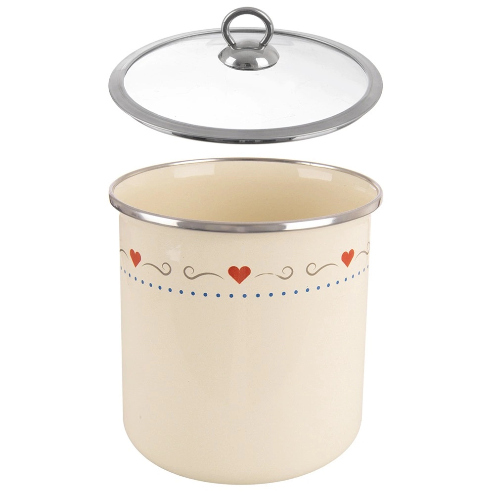 Hoogwaardige emaille op staal is huidvriendelijk, eenvoudig te reinigen en bestand tegen dagelijks gebruik. De crèmekleur met hartjes geeft elke keuken een frisse look.