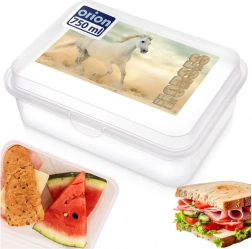 Deze lichte en duurzame lunchbox van hoogwaardig plastic is een uitstekende keuze voor school, uitstapjes en reizen. De transparante uitvoering met een opvallend paardenmotief helpt kinderen hun doosje gemakkelijk herkennen. Eén ruime kamer biedt plaats aan sandwiches, fruit, groenten en kleine snacks.