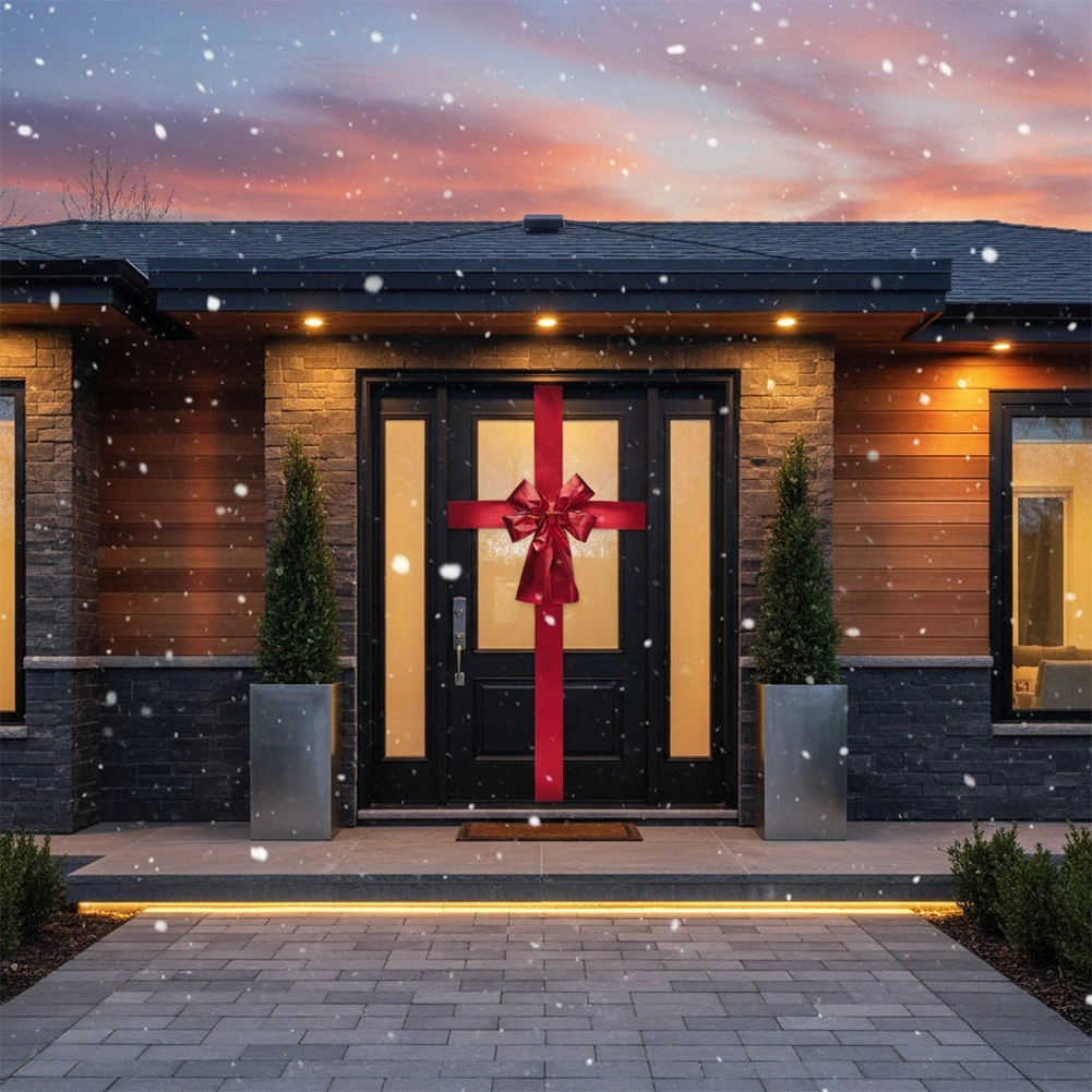 Breng in enkele minuten een echte feestelijke sfeer in huis. Deze opvallende rode strik met een lint van 4,3 m maakt het mogelijk om standaarddeuren zowel verticaal als horizontaal te versieren en creëert het effect van een cadeauverpakking. Het glanzende oppervlak weerkaatst prachtig het licht en geeft de decoratie een luxe en feestelijke uitstraling.