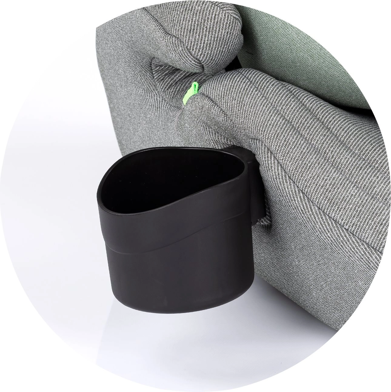 5-punts veiligheidsgordel met zachte kussentjes en een geïntegreerde bekerhouder voor veilig en comfortabel reizen.